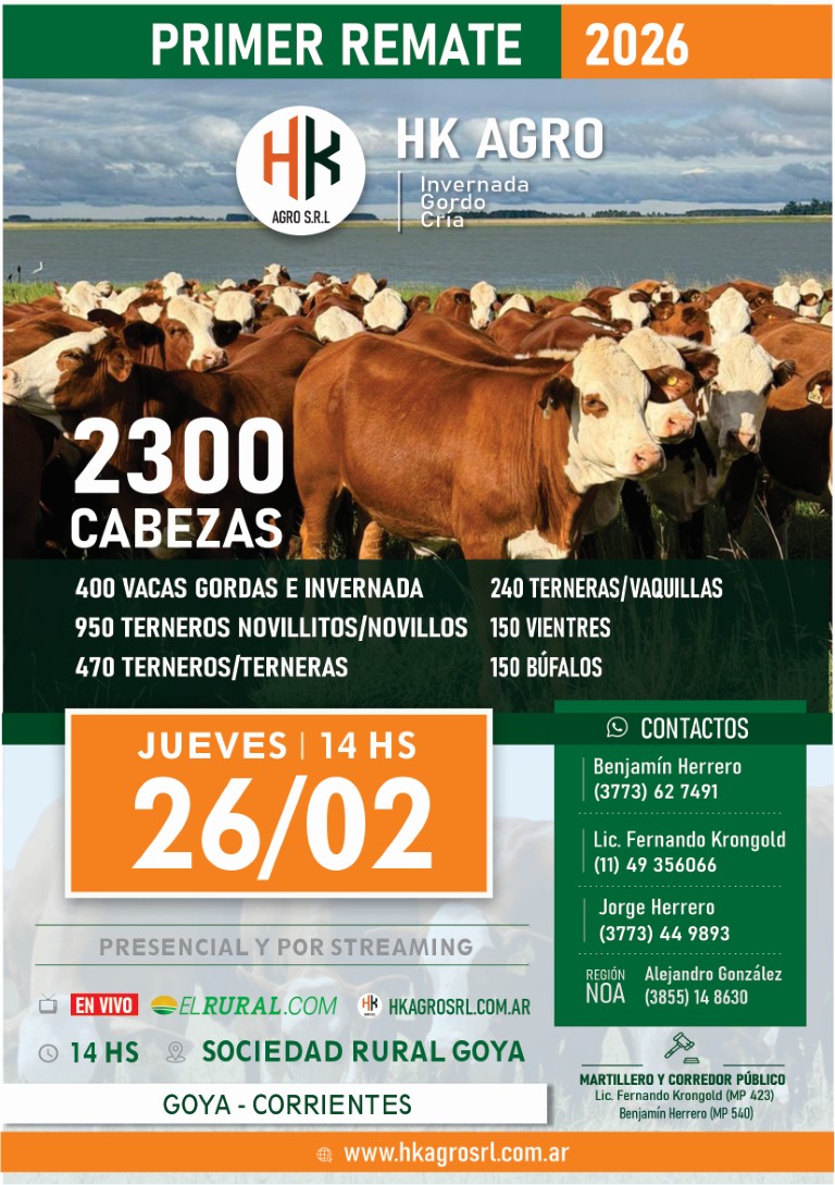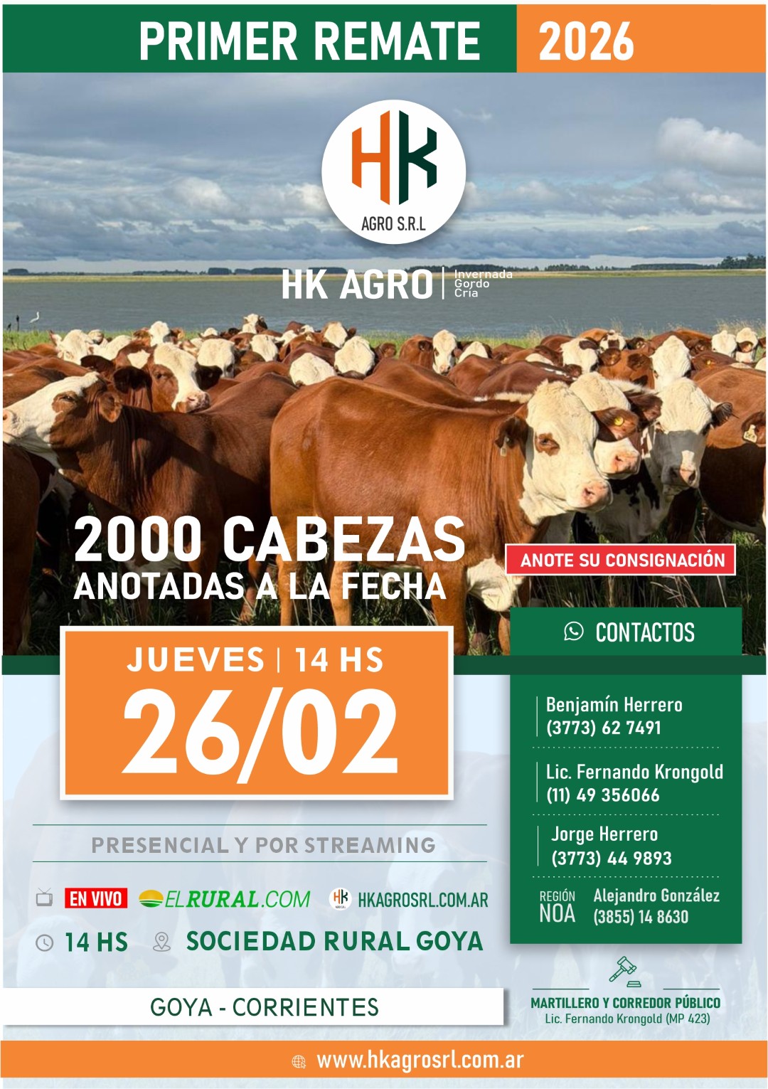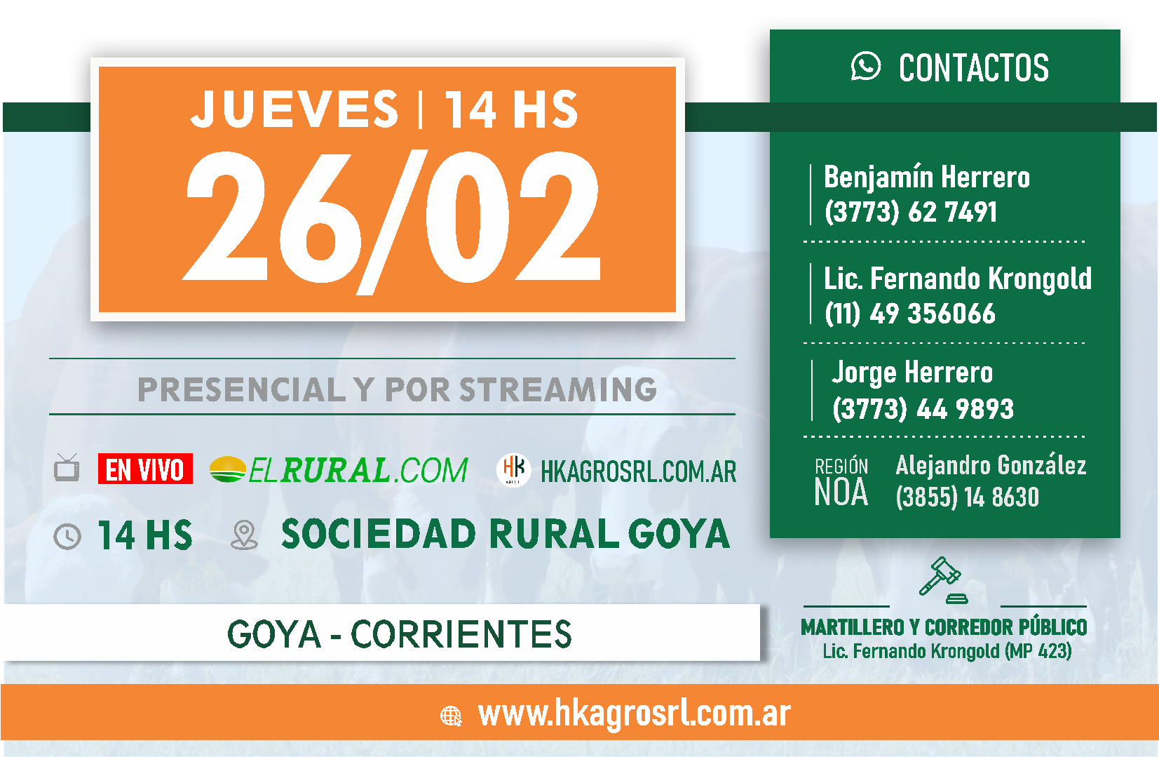Somos una firma creada por Fernando Krongold, Benjamin y Jorge Herrero en la provincia de Corrientes con base en Mercedes y Goya que surge a raiz del trabajo conjunto ganadero dando lugar primero a nuestros remates de hacienda para luego diversificarse a otras areas de la industria en la region.